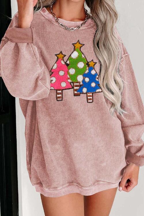 Christmas Tree Round Neck Drop Shoulder Sweatshirt
