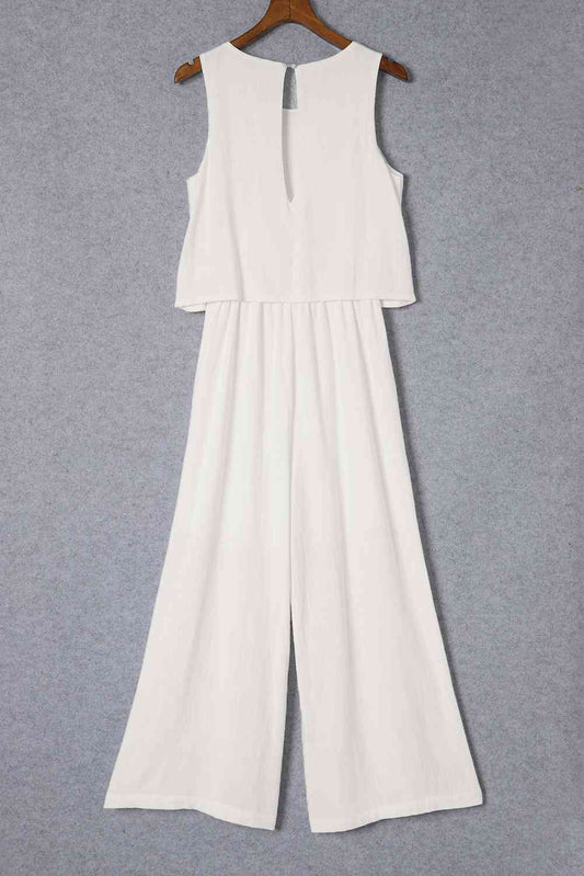 Double Take Buttoned Round Neck Tank and Wide Leg Pants Set