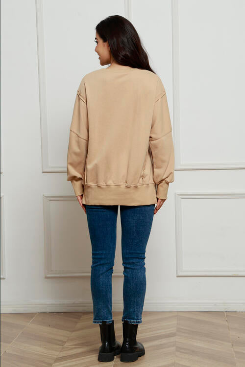 Exposed Seam Long Sleeve Slit Sweatshirt