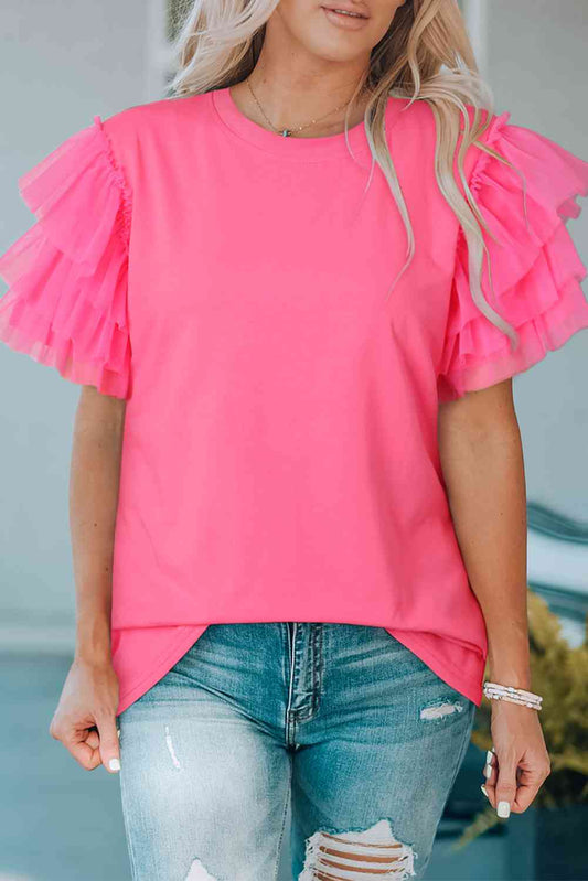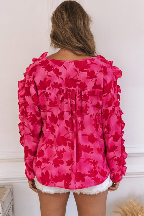Sold outFloral Tie Neck Ruffle Trim Blouse
