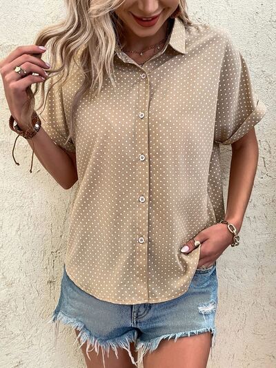 Polka Dot Button Up Short Sleeve Blouse